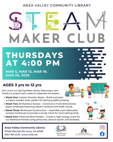 On Thursdays, we will have an activity based on S.T.E.A.M. These activities for children to learn something about Science, Technology, Engineering, Art or Math. All are welcome to join in, though younger children may need assistance from their parents